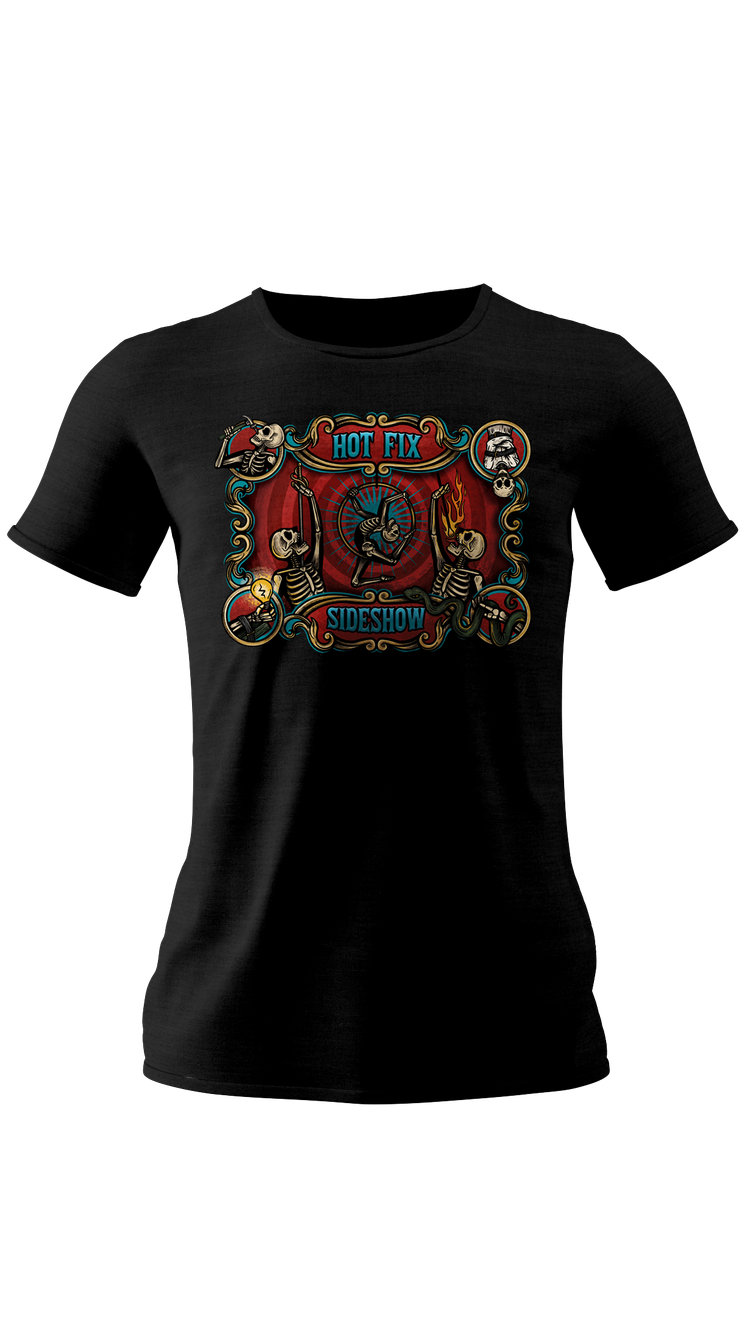 Take home a little piece of Hot Fix Sideshow today with tees, tanks, totes, and wood prints featuring performer banners and our rubber chicken logo, all designed by Parlor Trick Prints.